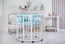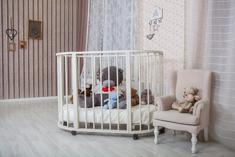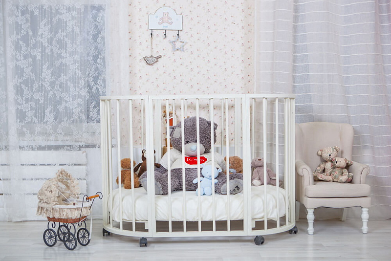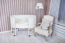 - Благодаря колесикам не составит труда переместить кровать даже со спящим ребенком, не потревожив его сон.