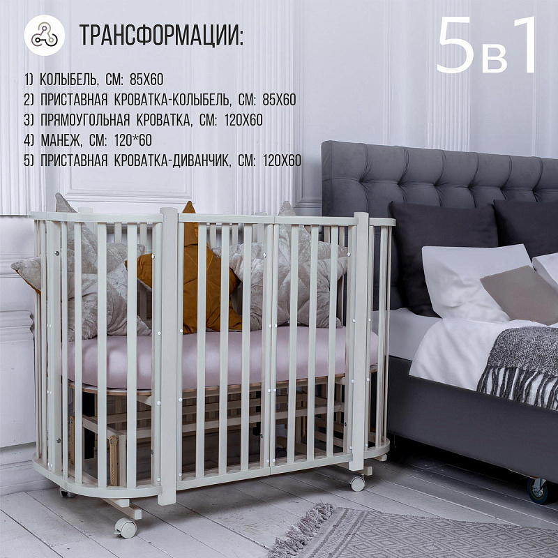 Детская кровать-трансформер 5 в 1 Sweet Baby Palermo - воплощение стиля, удобства и качества. Украсит интерьер детской и подарит много крепких и цветных снов малышу! Благодаря функции расширения кроватка Palermo имеет два положения по длине: колыбель для новорожденных и кроватка для дошкольников. Съемная передняя стенка дает возможность трансформировать колыбель в приставную, а кроватку - в диванчик для подросших малышей. В зависимости от роста и возраста ребенка уровень дна кроватки регулируется в 5 положениях, что обеспечивает безопасность малыша и удобный доступ к нему. Кроватное основание с отверстиями создает оптимальные условия для вентиляции матраса и комфортные условия для сна.