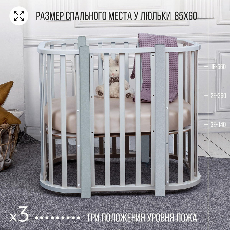 Детская кровать-трансформер Sweet Baby Palermo 5 в 1 с маятником белый/серыйНет оценокХарактеристики