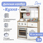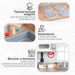 Детская игровая кухня Tomix Dora непременно понравится юным кулинарам! В ней есть все для реалистичной игры: духовой шкаф с двумя полками для разных блюд и щелкающими переключателями, варочная поверхность с четырьмя конфорками, раковина, вместительные ящики для хранения посуды, часы, по которым юные поварята смогут отслеживать время приготовления своих блюд, и даже микроволновая печь! Также в комплекте с кухней идет деревянная посуда и столовые приборы.