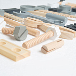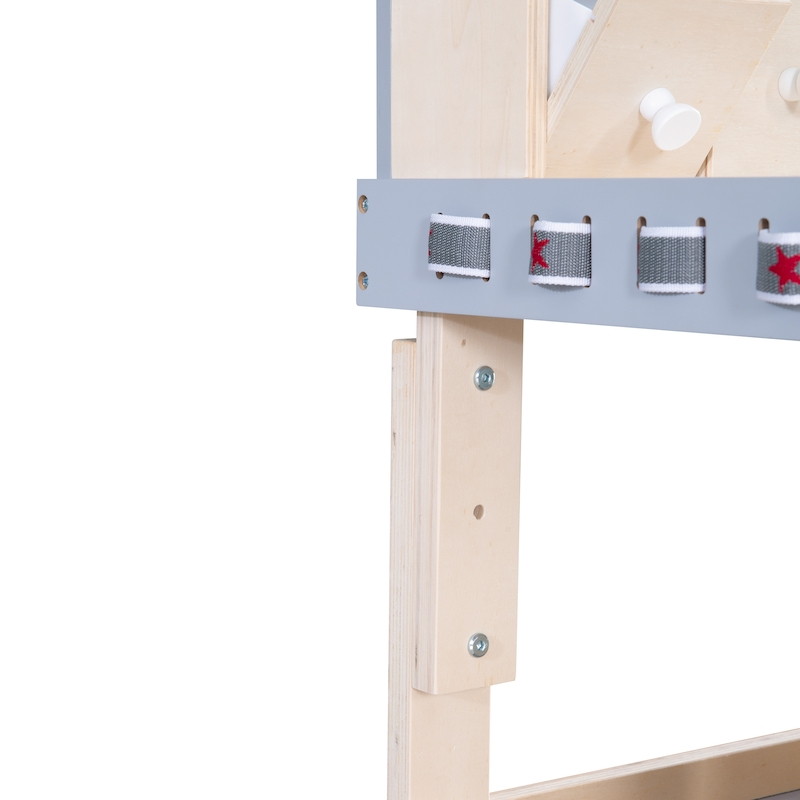 С верстаком Roba маленькие мастера могут создавать, строить и мастерить, как большие! Растущая регулируемая по высоте деревянная игровая скамейка с аксессуарами из 27 предметов (приобретаются отдельно) способствует творчеству и моторике маленьких любителей. В большой рабочей поверхности с задней стенкой есть отверстия, в которые можно вкрутить прилагаемые винты с гайками.