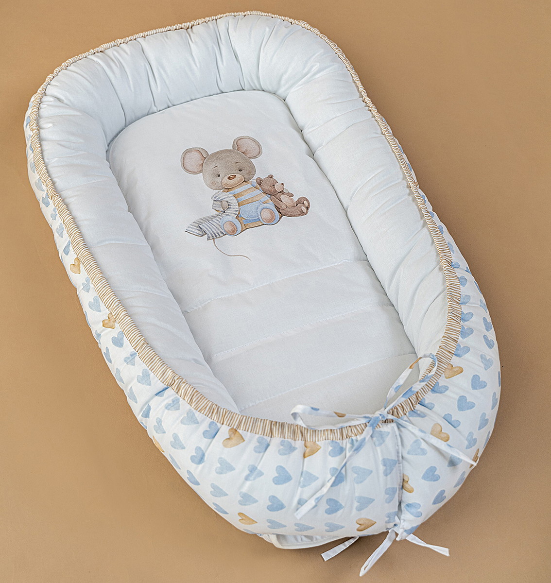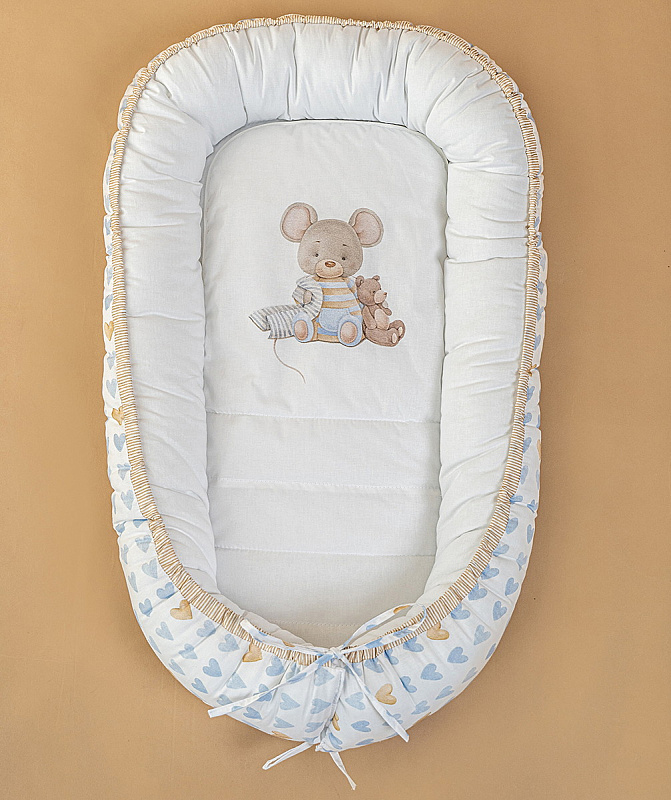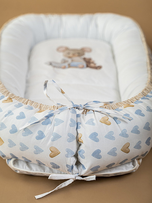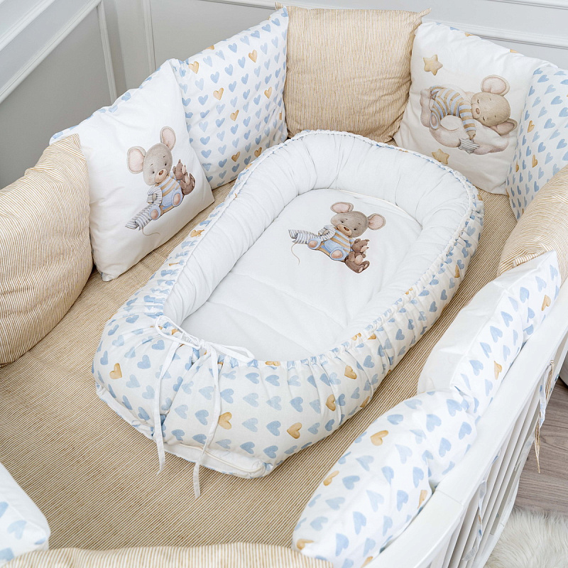 Детская подушка-гнездышко Lappetti Мышки на облачке с матрасиком бежевый голубойНет оценокХарактеристики