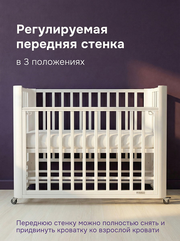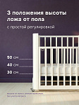 Три положения ложа - удобно подходить, класть и доставать ребеночка.(32 см, 42 см и 52 см от пола)