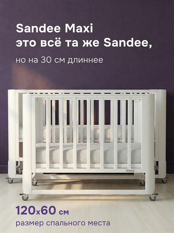 Детская приставная кровать для новорожденных Mr Sandman Mr Sandee Maxi с продольным маятником - выполнена из прочного и долговечного массива бука, имеет широкий функционал, комфорт и абсолютную безопасность для малыша. Детская кроватка оборудована специальными ремнями, которые надежно крепятся к родительской кровати и обеспечат максимальную безопасность малышу, а маме не придется вставать ночью для кормления. У кровати закруглены углы и края, тщательно рассчитано безопасное расстояние между рейками. Ложе кроватки выполнено из высокопрочной и влагостойкой лиственницы.
