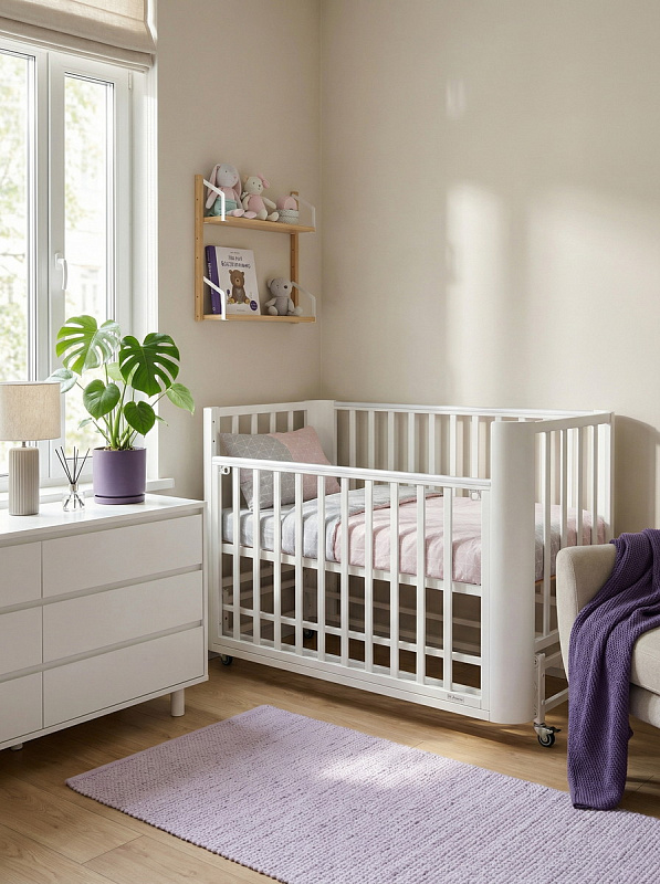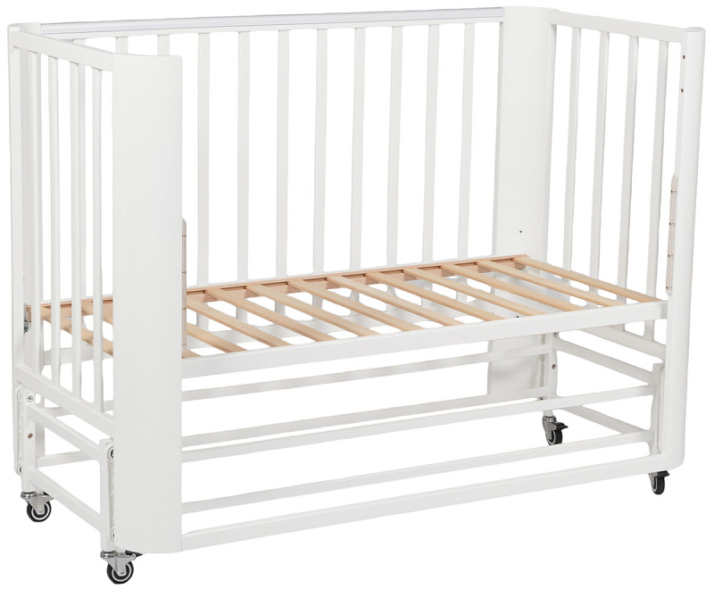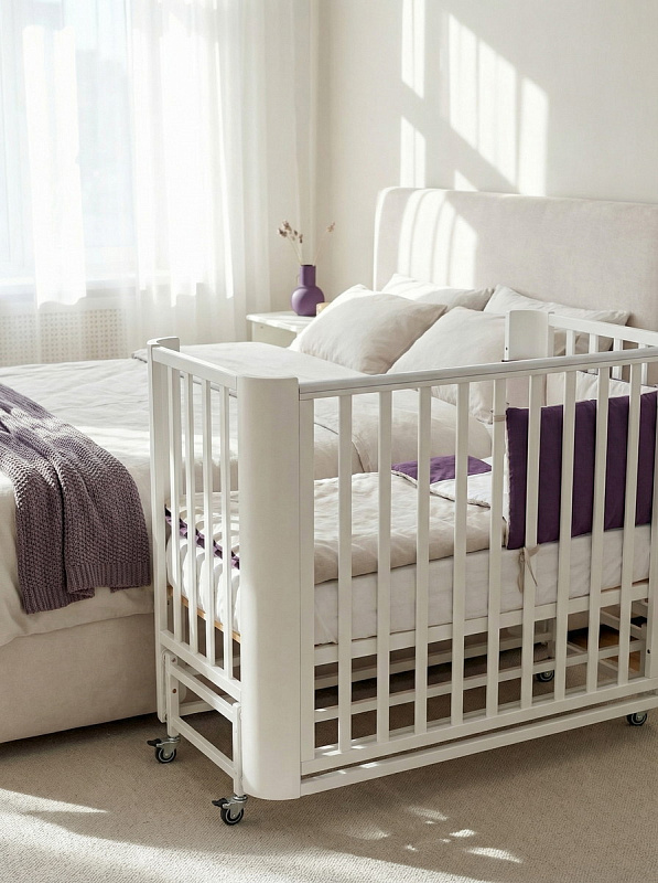 Съемные четыре колеса - чтобы без труда передвигать кроватку по квартире, у колес есть стопоры.