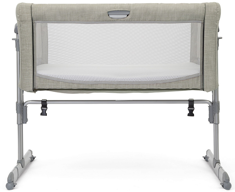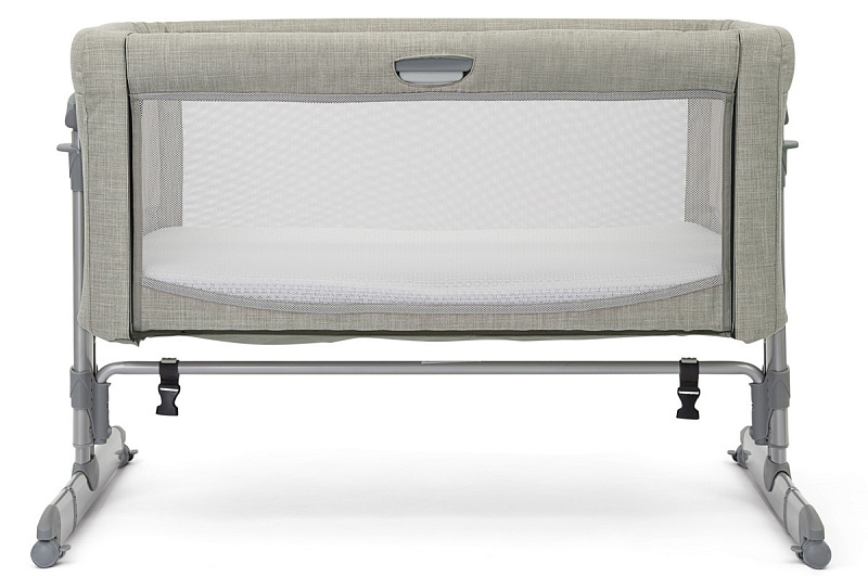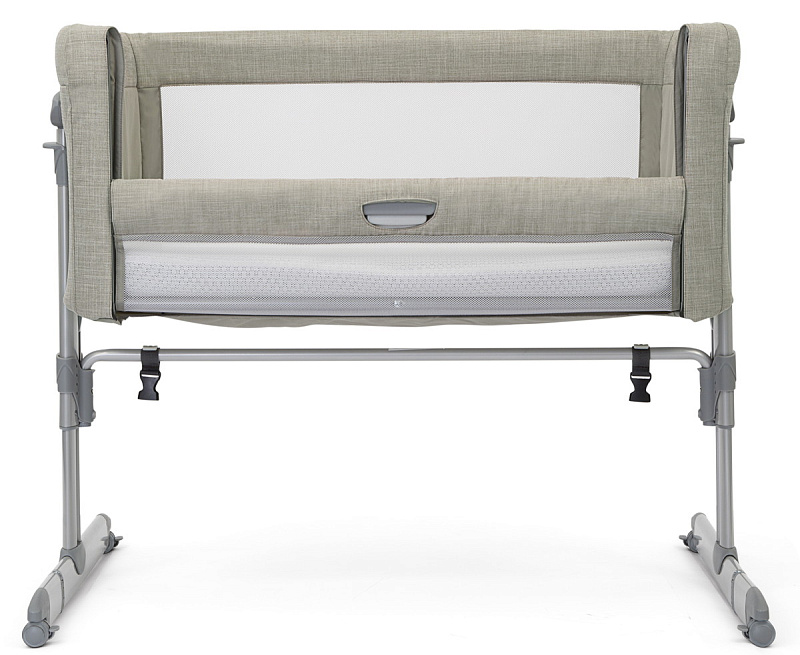 Высота колыбели регулируется нажатием клавиш с двух сторон. Можно ставить под наклоном. На ножках расположены резиновые колесики, которые не оставляют следов на покрытии любого типа. Благодаря им кроватку можно бесшумно передвигать по квартире. Для безопасности пристегните специальный ремень к родительской кровати, который идет в комплекте. Зафиксируйте детскую колыбель, как это показано в инструкции. Одна из боковин кроватки бесшумно регулируется по высоте с помощью клавиши. Колыбель компактно складывается, можно взять в поездку.