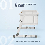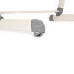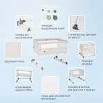 Для комфортного перемещения на опорных стойках кроватки предусмотрены 2 колесика. Устойчивое положение обеспечивают противоскользящие накладки на противоположных сторонах ножек. Присутствует возможность регулировки длины ножек, выполняемой буквально в одно нажатие.
