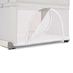 Отличительной особенностью данной модели является возможность трансформации в манеж. Для этого необходимо расстегнуть «молнии» на основании корпуса, после чего опустить каркас до уровня пола. Матрасик, предлагаемый в комплекте, имеет съемный чехол, который можно стирать в ручном режиме.