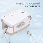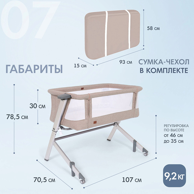 - Комплектация: матрас полиуретановый, простыня на резинке, чехол для переноски, ремень для фиксации с родительской кроватью