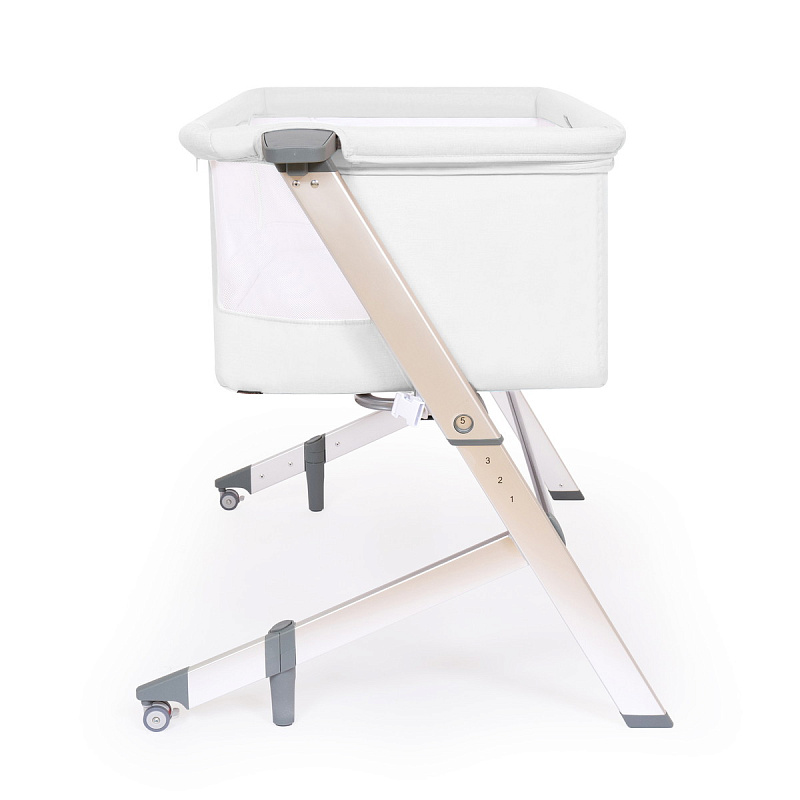 Здоровый сон новорожденного младенца — заветная мечта молодых родителей, исполнить которую поможет приставная колыбель Accanto Dalia. Размеры колыбели оптимальны для детей в первые шесть месяцев жизни и рассчитаны на то, чтобы обеспечить ребенку комфортное положение и одновременно чувство уюта и защищенности. Возможность изменять наклон ложа до 175° очень важна для полноценной вентиляции лёгких новорожденного и профилактики срыгиваний. Поскольку ничто не может компенсировать удалённость от мамы, предусмотрен режим совместного сна: можно снять боковую стенку и придвинуть колыбель к родительской кровати, зафиксировав её специальными ремнями. Для удобства использования предусмотрены пятиуровневая регулировка по высоте и колёса со стопорами. Колыбель легко разбирается и компактно складывается в практичный чехол, благодаря чему она незаменима в путешествиях.