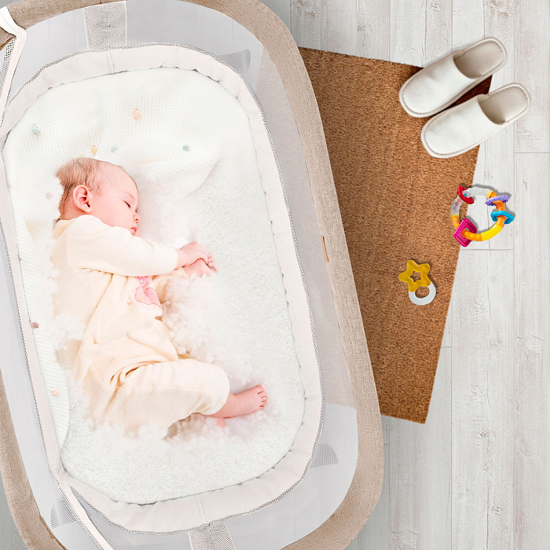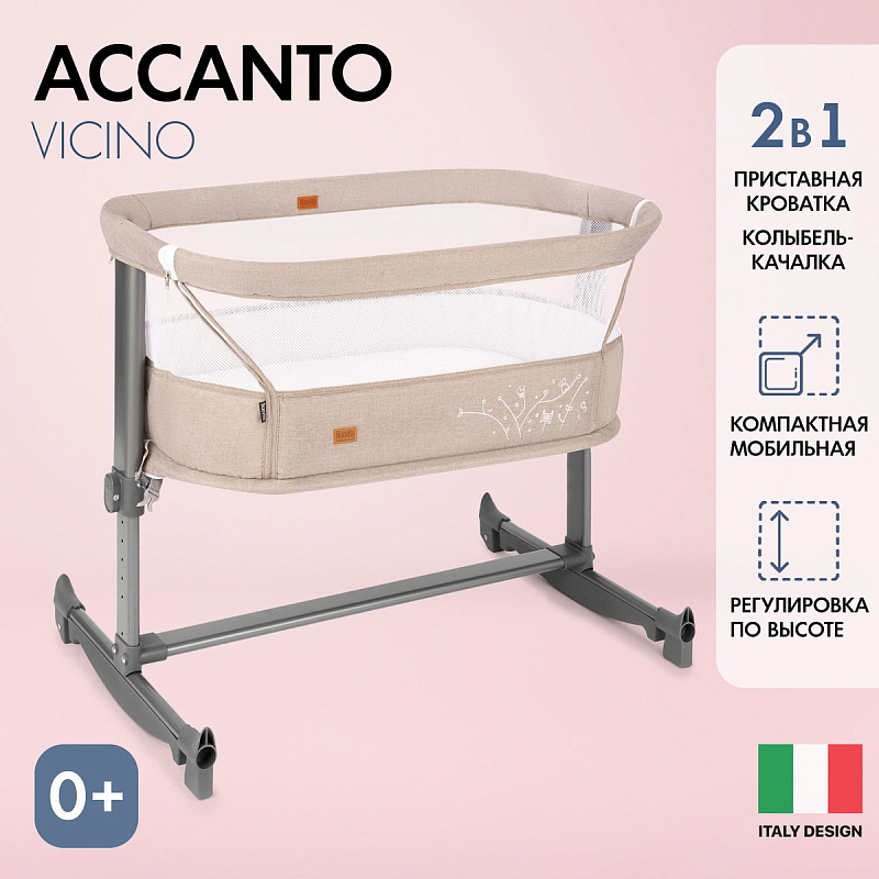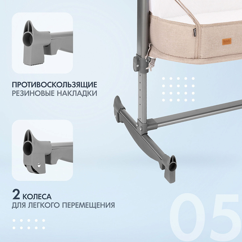 Детская приставная кроватка Nuovita Accanto Vicino Khaki Lino/Хаки лён