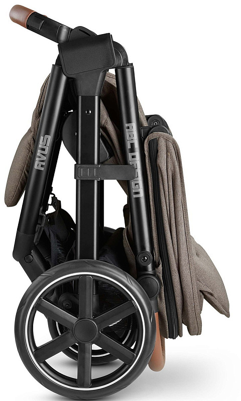 с помощью скрытой ручки в спинке сидения можно легко сложить коляску одной рукой