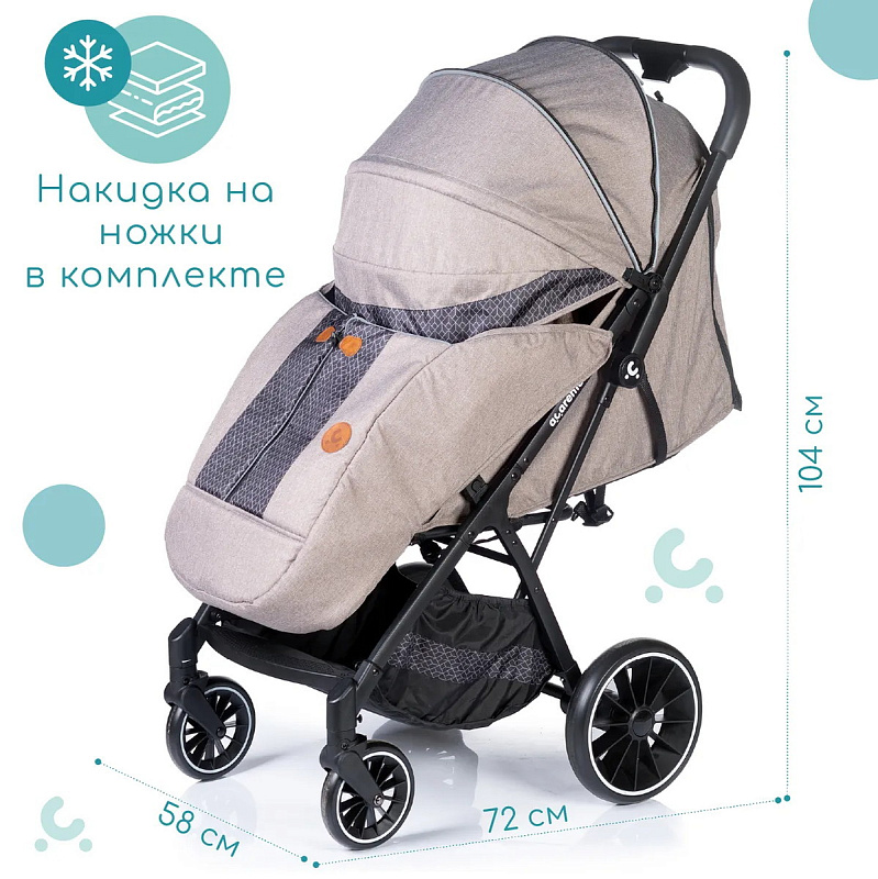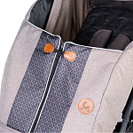 В комплекте с коляской идёт накидка на ножки, которая согреет малыша в прохладную погоду. Большое вентиляционное окно, закрываемое клапаном на застёжке-молнии, обеспечивает хорошую циркуляцию воздуха и предотвращает перегрев.