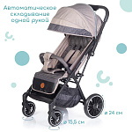 Благодаря компактному складыванию, системе автоскладывания и быстросъёмным колёсам, эта коляска легко поместится в багажнике автомобиля и станет незаменимым помощником во время путешествий.