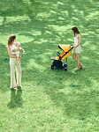 дополнительным положением для доступа к корзине, есть дополнительная пластиковая подножка для больших детей Спинка: регулируемая с помощью ремня, есть положение для новорожденного. Капюшон: регулируется без кнопок: 4 положения