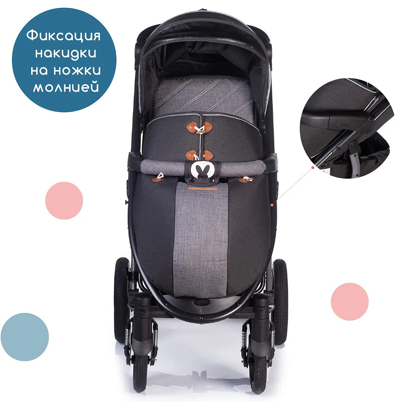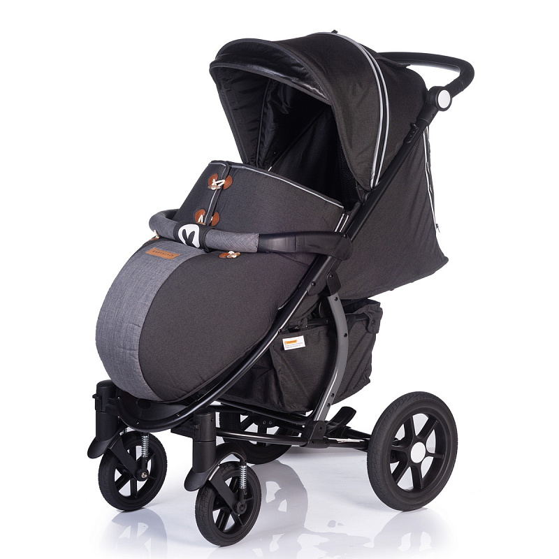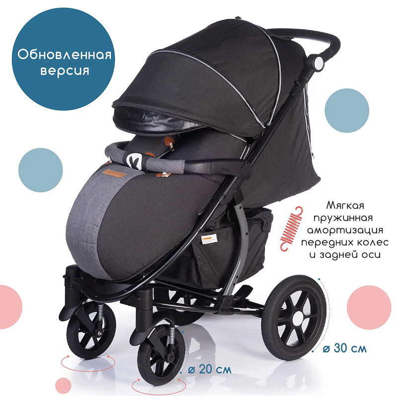 Коляска оснащена большими резиновыми колесами и мягкой амортизацией. Такой транспорт сможет ехать по любым дорогам, не боятся мороза и не боятся проколов. Резиновые колеса имеют мягкий и тихий ход и легко снимаются при необходимости. Еще большим плюсом модели является регулируемая ручка для родителей. Большой диапазон регулировки ручки позволит родителям любого роста удобно управлять коляской.