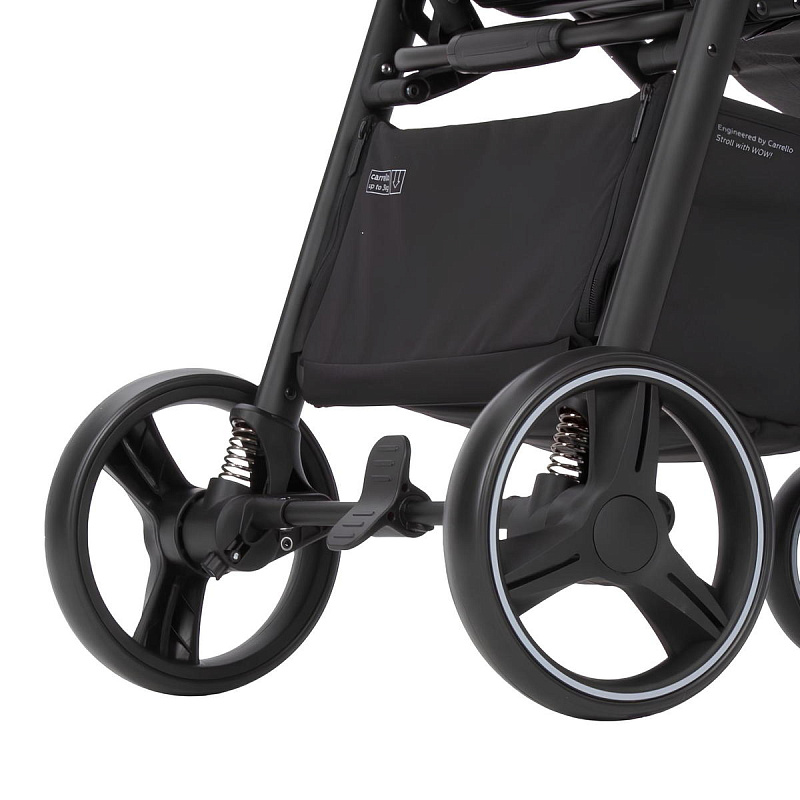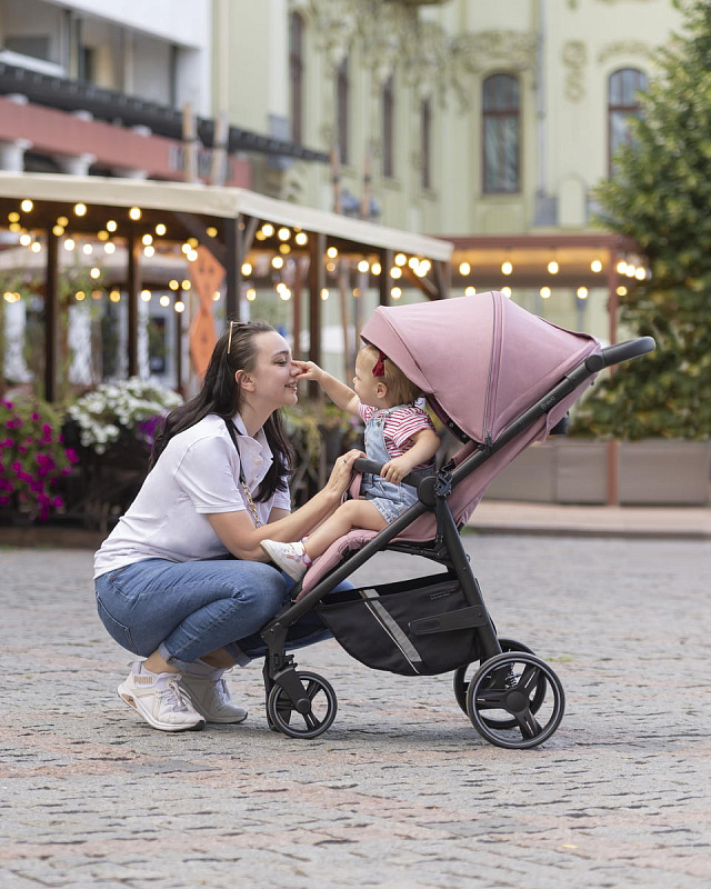 Коляска отличается более мягким ходом, благодаря амортизации на всех колесах и регулируемой ручкой для родителей. Регулируемая ручка позволяет настроить высоту ручки под рост родителей, что обеспечивает более комфортное управление коляской.