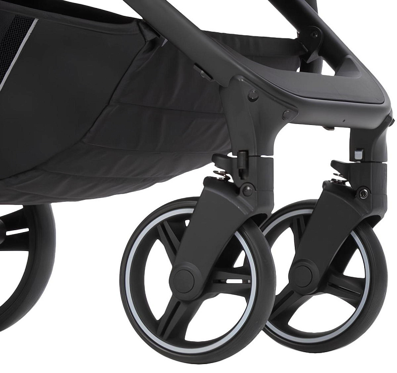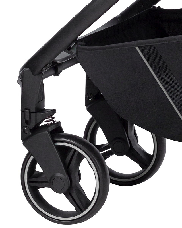 Коляска легкая, маневренная и отлично управляется даже одной рукой. Все колеса из EVA, а передние колеса поворотные на 360 градусов. Это обеспечивает коляске плавный ход и легкость управления.