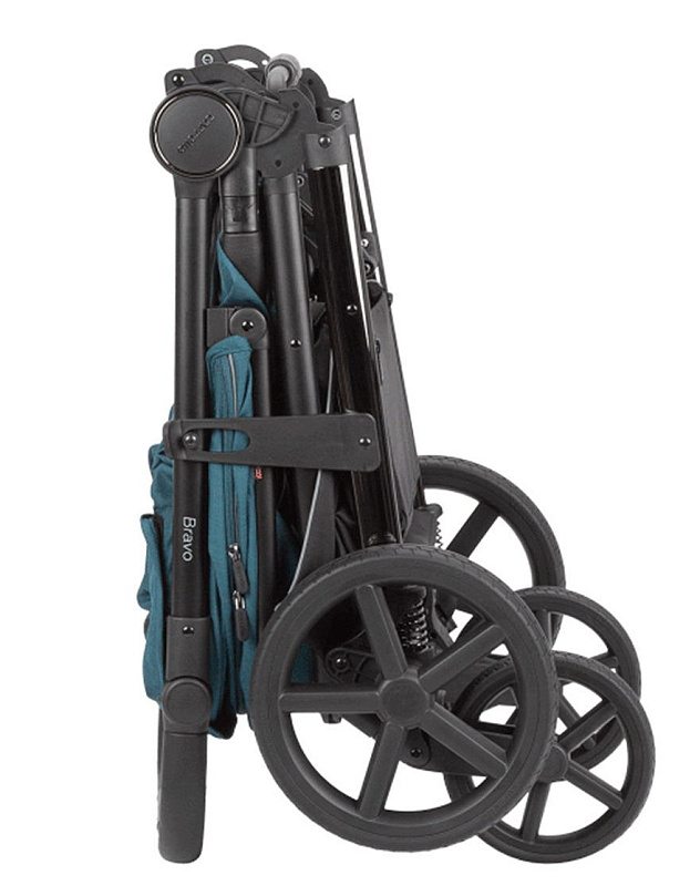 Чтобы сложить коляску, достаточно снять предохранитель, направить ручку вперёд и поднять Bravo за специальную ручку.