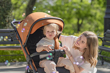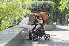 Механическая регулировка спинки в трёх положениях, включая "лёжа" с помощью кнопочного механизма поднятия спинки. Москитную сетку, как всегда, вы найдёте в "секретном" кармашке под подножкой.