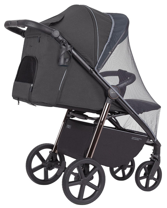 Механическая регулировка спинки в трёх положениях, включая "лёжа" с помощью кнопочного механизма поднятия спинки. Москитную сетку, как всегда, вы найдёте в "секретном" кармашке под подножкой.