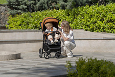В сложенном виде коляска сохраняет вертикальное положение и блокируется от случайного раскладывания.