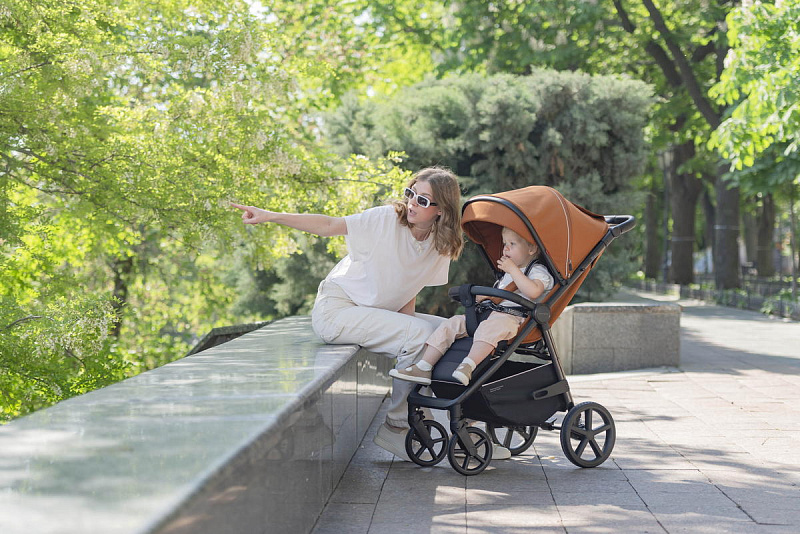 Механическая регулировка спинки в трёх положениях, включая "лёжа" с помощью кнопочного механизма поднятия спинки. Москитную сетку, как всегда, вы найдёте в "секретном" кармашке под подножкой.