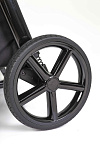 Передние колеса, оснащенные системой автоматической фиксации в положении прямо, теперь фиксируются удобным флажком, расположенным под подножкой. Это позволяет легко переключаться между режимами движения.