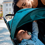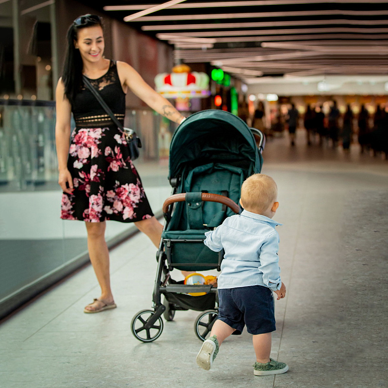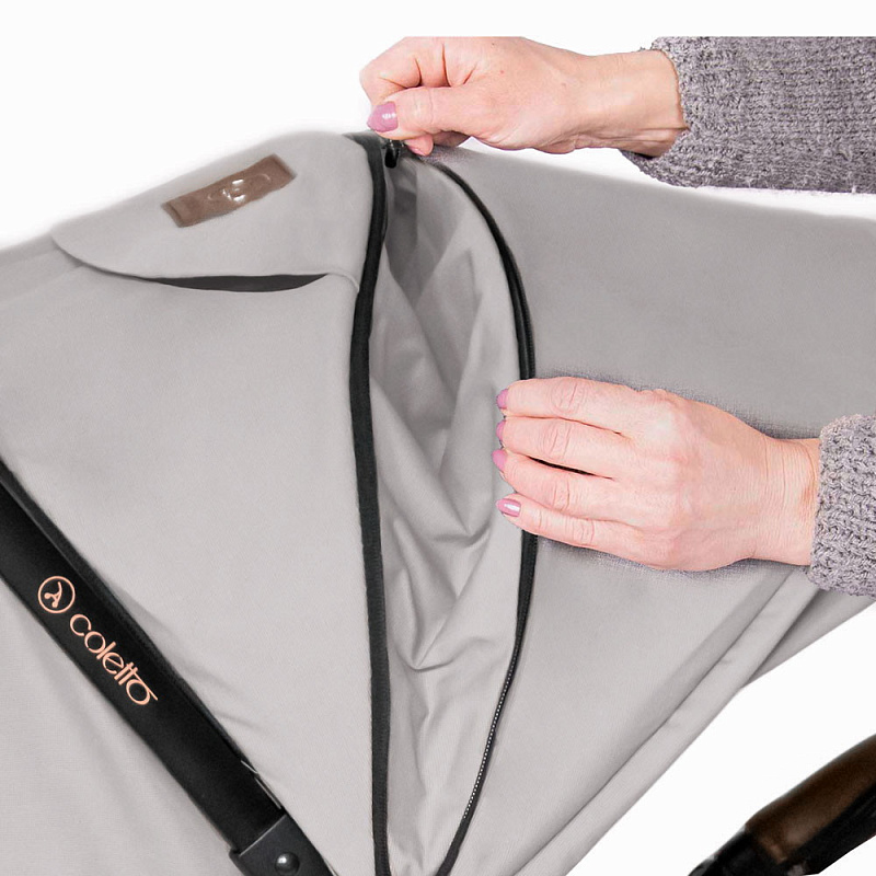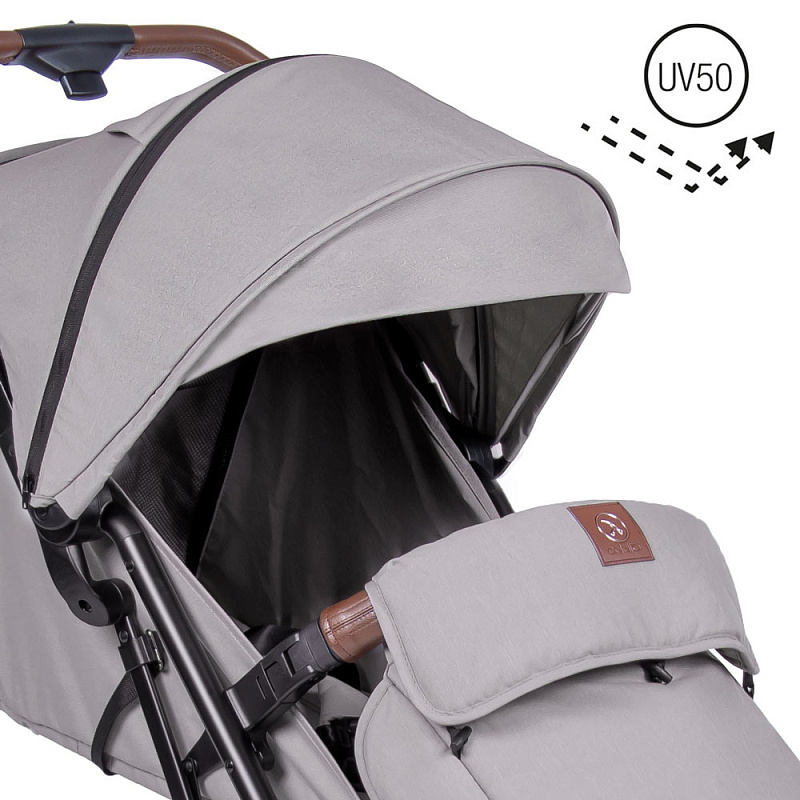 - Просторный расширяемый капор с UV50 + отлично защищает ребенка от ветра, солнца и дождя