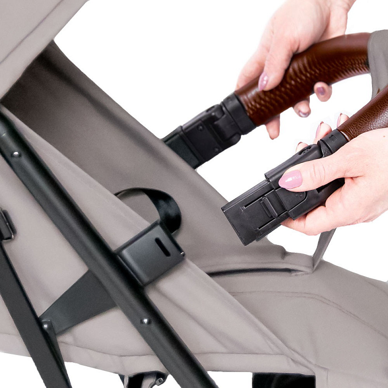 Компактная городская коляска сочетает в себе современный дизайн и комфорт. Инновационная система автоматического складывания, поворачивающийся на 360 градусов бампер и удобное положение для сна облегчат повседневные прогулки. Ручка и бампер покрыты эко-кожей, которая прочна, устойчива к погодным условиям и ее легко держать в чистоте. Расширенная капор защитит от ветра и дождя, а сетчатое окно не только обеспечит циркуляцию воздуха, но и облегчит наблюдение за спящим малышом.