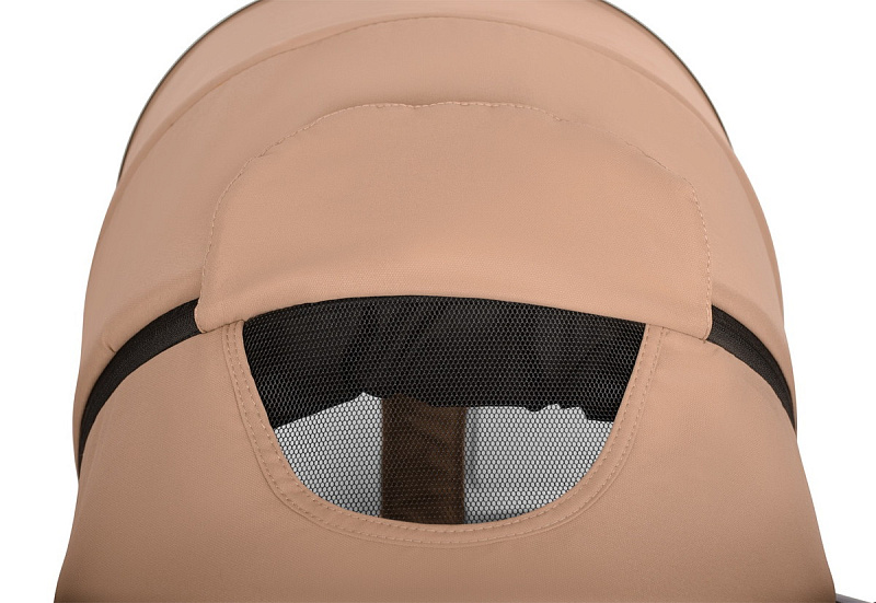 5. Капор коляски длинный и может опускаться, обеспечивая необходимый уровень затемнения внутри коляски во время сна. Верхняя часть капюшона оснащена смотровым окошком. На задней стенке спинки коляски есть скрытое окно с москитной сеткой для лучшей вентиляции в жаркую погоду.