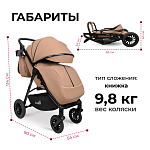 2. Большие прорезиненные колеса являются износостойкими и легкими, не боятся проколов. Они не требуют подкачки и обеспечивают прекрасную маневренность на любом покрытии дороги. Диаметр передних колес составляет 18 см, а задних - 25 см. Передние колеса поворотные на 360° и имеют функцию фиксации направления движения. Кроме того, все колеса съемные. Для дополнительного комфорта и маневренности коляска оснащена амортизацией всех 4 колес.