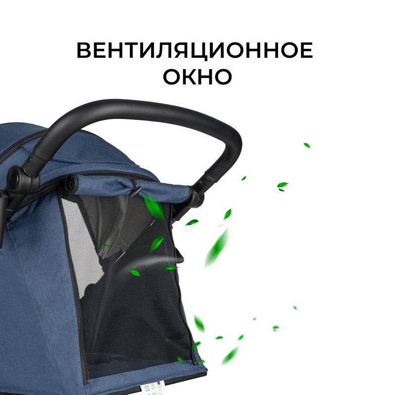 5. Капор коляски длинный и может опускаться, обеспечивая необходимый уровень затемнения внутри коляски во время сна. Верхняя часть капюшона оснащена смотровым окошком. На задней стенке спинки коляски есть скрытое окно с москитной сеткой для лучшей вентиляции в жаркую погоду.