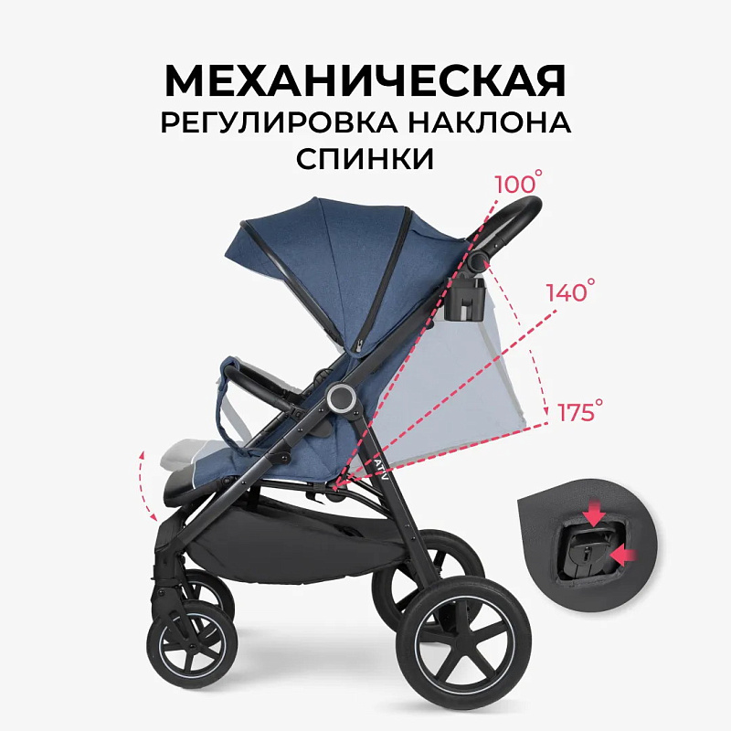 1. Механическая регулировка наклона спинки коляски осуществляется с помощью кнопки и имеет 3 положения наклона.