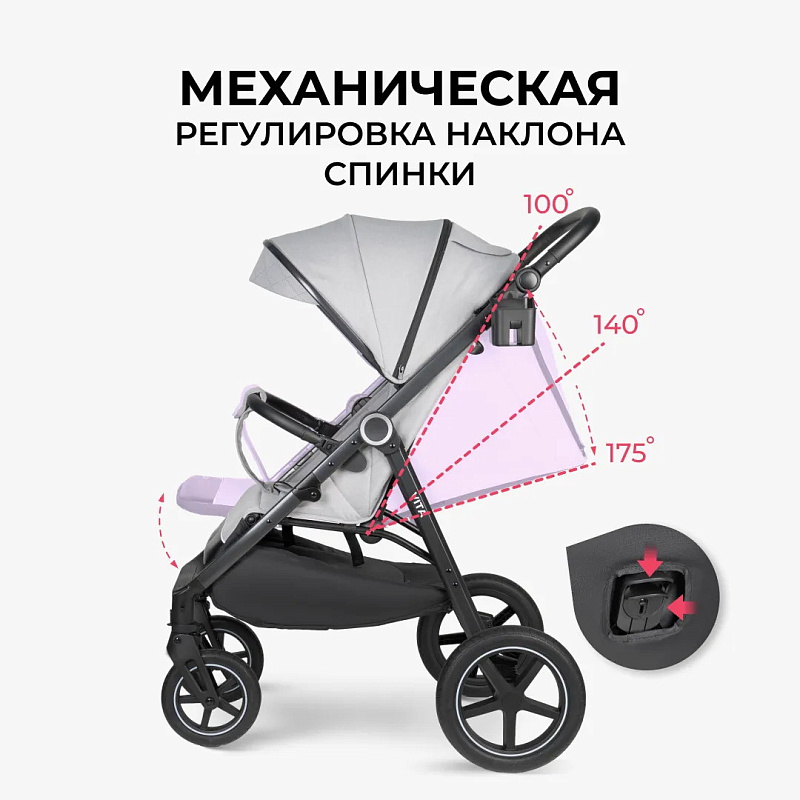1. Механическая регулировка наклона спинки коляски осуществляется с помощью кнопки и имеет 3 положения наклона.