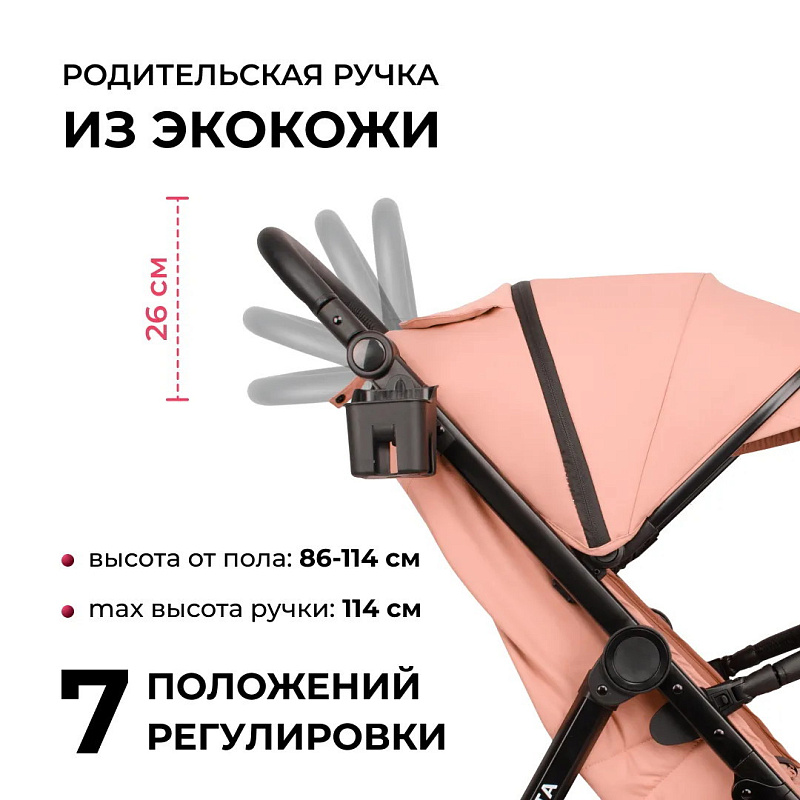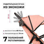 6. Родительская ручка регулируется по высоте в 7 положениях с максимальной высотой 114 см. Она выполнена из практичной экокожи.