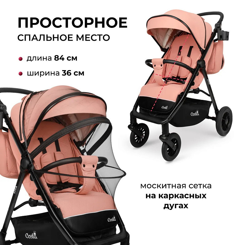 Прогулочная коляска Costa Vita - это идеальное решение для тех, кто ищет надежную, удобную и функциональную коляску для прогулок с малышом. Благодаря своим особенностям и характеристикам, она обеспечивает комфорт и безопасность для вашего ребенка в любое время года.