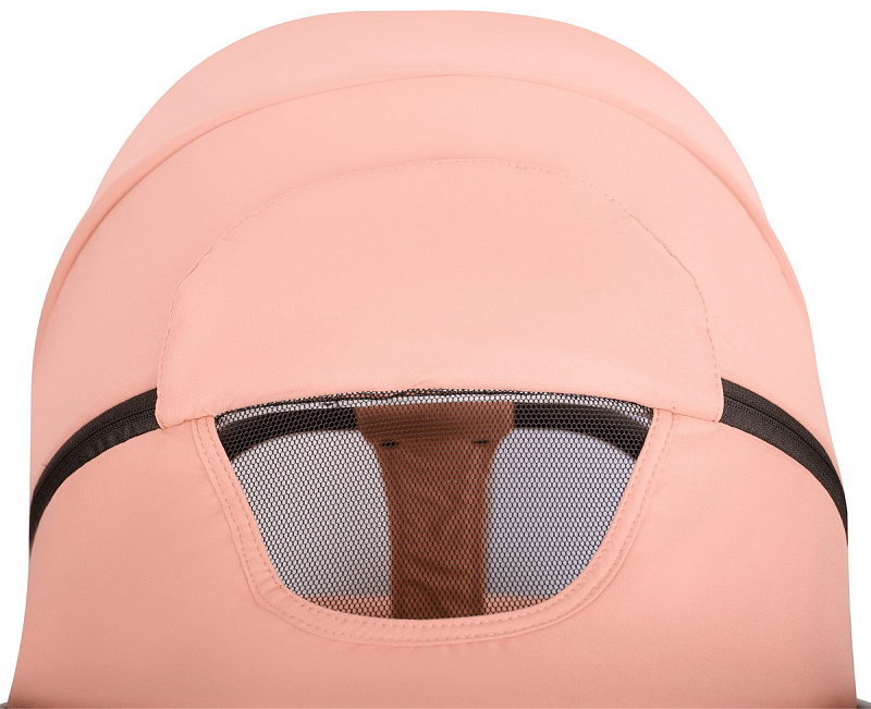 5. Капор коляски длинный и может опускаться, обеспечивая необходимый уровень затемнения внутри коляски во время сна. Верхняя часть капюшона оснащена смотровым окошком. На задней стенке спинки коляски есть скрытое окно с москитной сеткой для лучшей вентиляции в жаркую погоду.