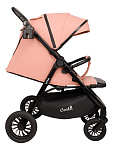 2. Большие прорезиненные колеса являются износостойкими и легкими, не боятся проколов. Они не требуют подкачки и обеспечивают прекрасную маневренность на любом покрытии дороги. Диаметр передних колес составляет 18 см, а задних - 25 см. Передние колеса поворотные на 360° и имеют функцию фиксации направления движения. Кроме того, все колеса съемные. Для дополнительного комфорта и маневренности коляска оснащена амортизацией всех 4 колес.