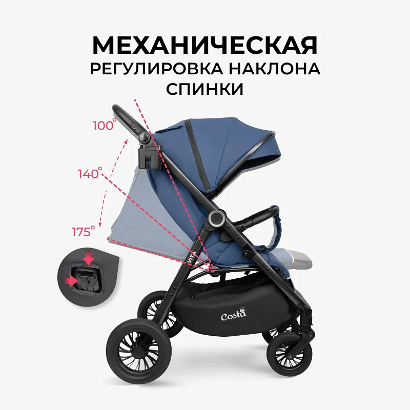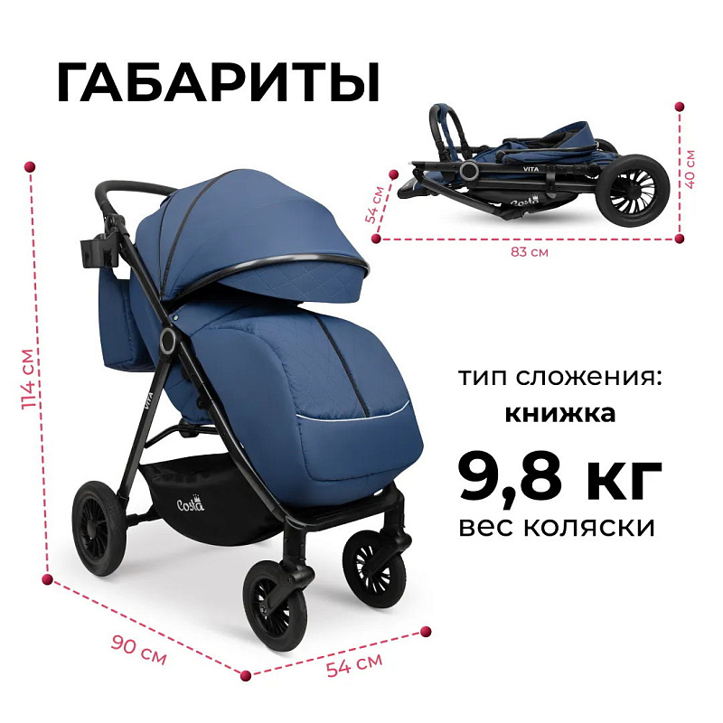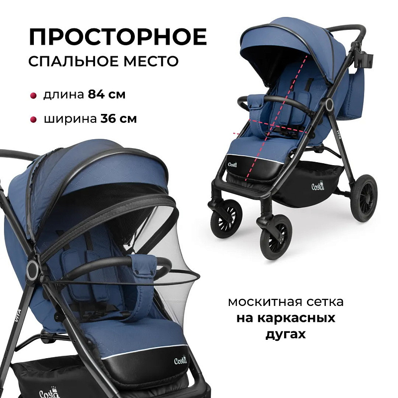 Прогулочная коляска Costa Vita - это идеальное решение для тех, кто ищет надежную, удобную и функциональную коляску для прогулок с малышом. Благодаря своим особенностям и характеристикам, она обеспечивает комфорт и безопасность для вашего ребенка в любое время года.