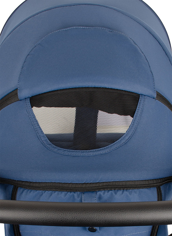 5. Капор коляски длинный и может опускаться, обеспечивая необходимый уровень затемнения внутри коляски во время сна. Верхняя часть капюшона оснащена смотровым окошком. На задней стенке спинки коляски есть скрытое окно с москитной сеткой для лучшей вентиляции в жаркую погоду.