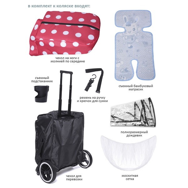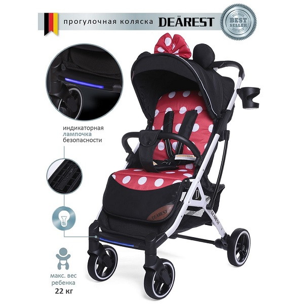 Детская прогулочная коляска Dearest 819 Красная точка / белая рама (Red Dot/white frame)1 оценкаХарактеристики