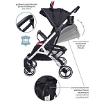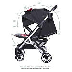 Прогулочная коляска невероятно легка и компактна, в то же время продуманная до мелочей. Она станет вашим спутником в путешествиях и ежедневных прогулках. Одно из главных конкурентных преимуществ модели - механическая система наклона спинки. Достаточно просто нажать на «рычаг», чтобы опустить и поднять спинку. Это гораздо удобнее и быстрее «ремешка». Большой капюшон раскладывается до бампера. Коляска складывается чемоданчиком с телескопической ручкой и проходит как ручная кладь в самолёт.