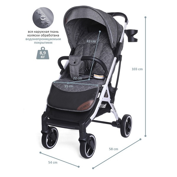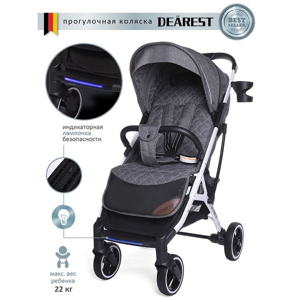 Детская прогулочная коляска Dearest 819 Серый / белая рама (Grey/white frame)