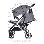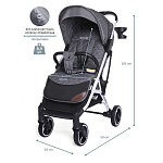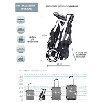 Прогулочная коляска невероятно легка и компактна, в то же время продуманная до мелочей. Она станет вашим спутником в путешествиях и ежедневных прогулках. Одно из главных конкурентных преимуществ модели - механическая система наклона спинки. Достаточно просто нажать на «рычаг», чтобы опустить и поднять спинку. Это гораздо удобнее и быстрее «ремешка». Большой капюшон раскладывается до бампера. Коляска складывается чемоданчиком с телескопической ручкой и проходит как ручная кладь в самолёт.