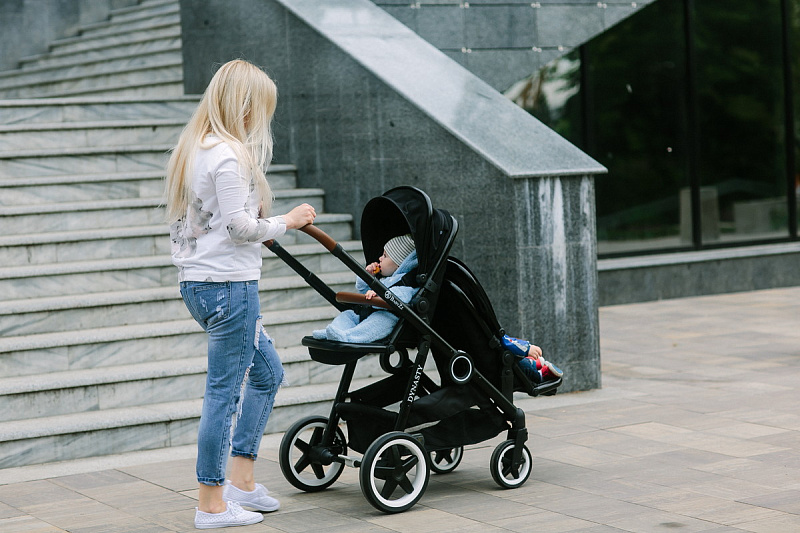 Прогулочное сидение коляски BabyZz Dynasty имеет жесткую ортопедическую спинку и опускается по типу «гамак».