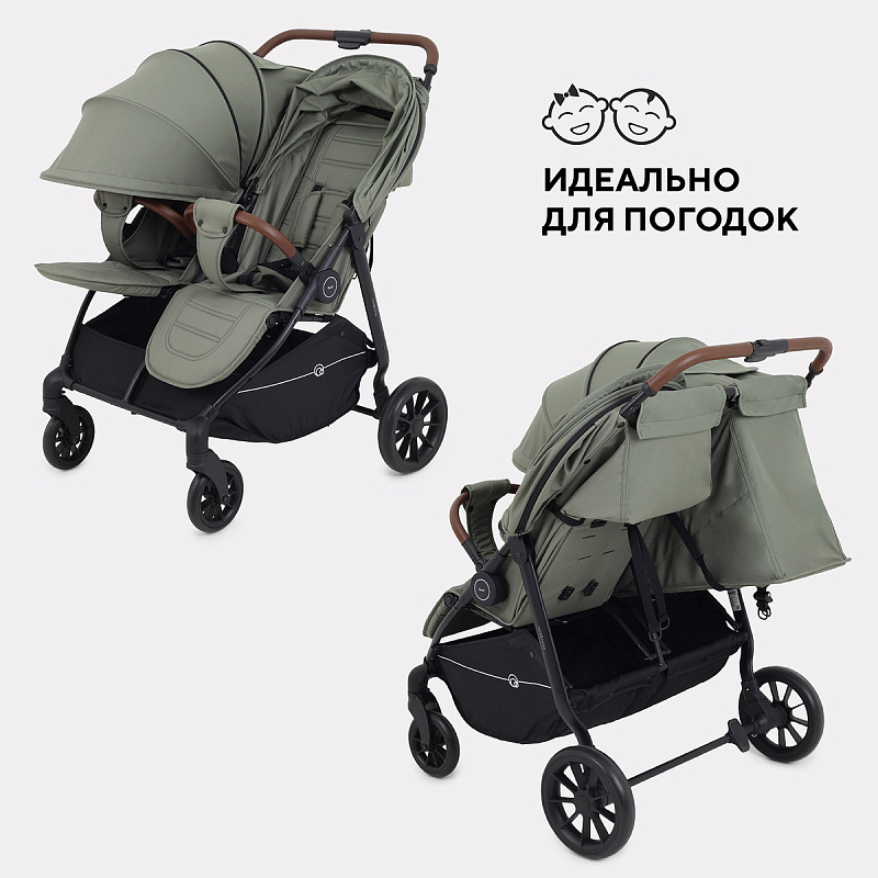 Детская прогулочная коляска для двойни Rant Twinny 2025 Olive