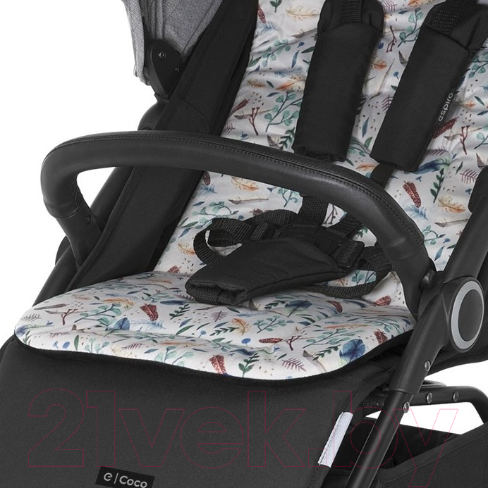 - Дополнительный мягкий вкладыш на сиденье с модным растительным принтом.