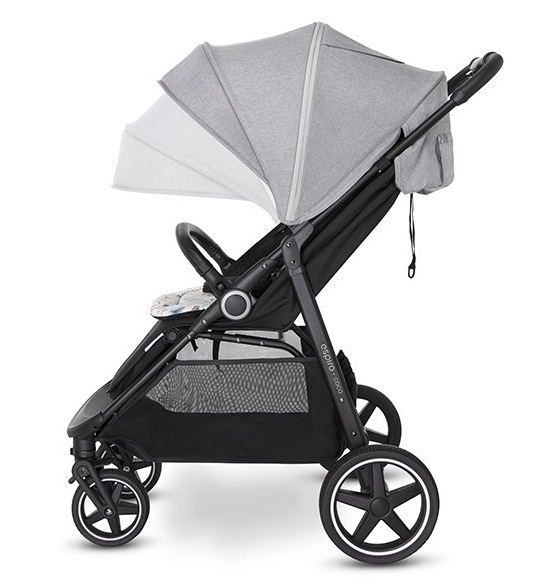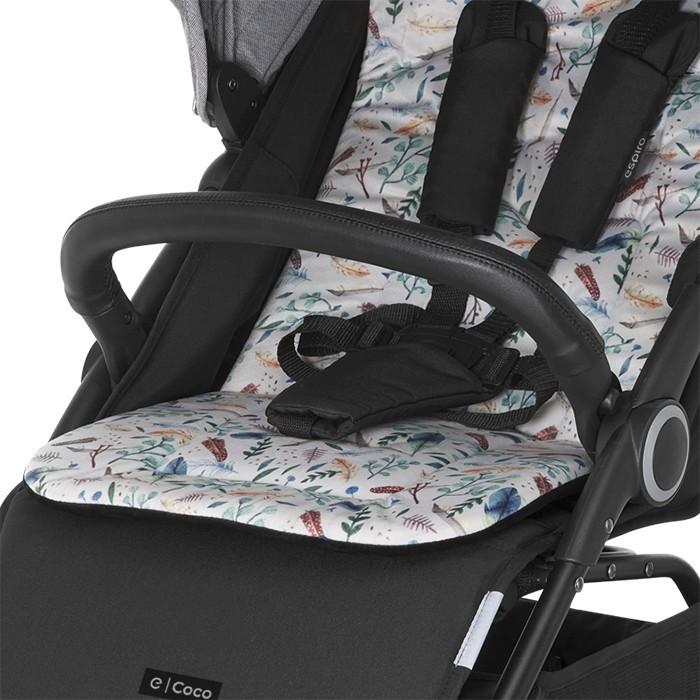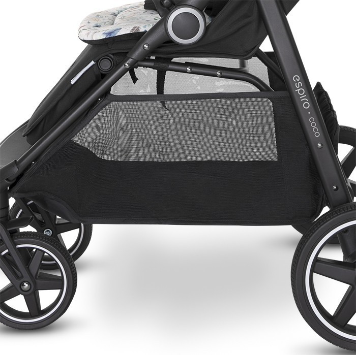 Коляска Espiro Coco — это комфорт для малыша и практичное решение для родителей. Эстетичная экокожа на ручке и бортиках, чрезвычайно практичная ткань на сиденье или двусторонняя вставка — элементы коляски, которые помогают содержать ее в идеальной чистоте. Кроме того, упомянутая уникальная вставка с уникальным принтом имеет практичные застежки, которые не позволяют ей соскальзывать с сиденья, даже когда играет занятый малыш.