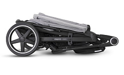 - Сложить коляску можно, не снимая перила, буквально одной рукой.